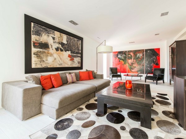 Salon interessant gris blanc rouge