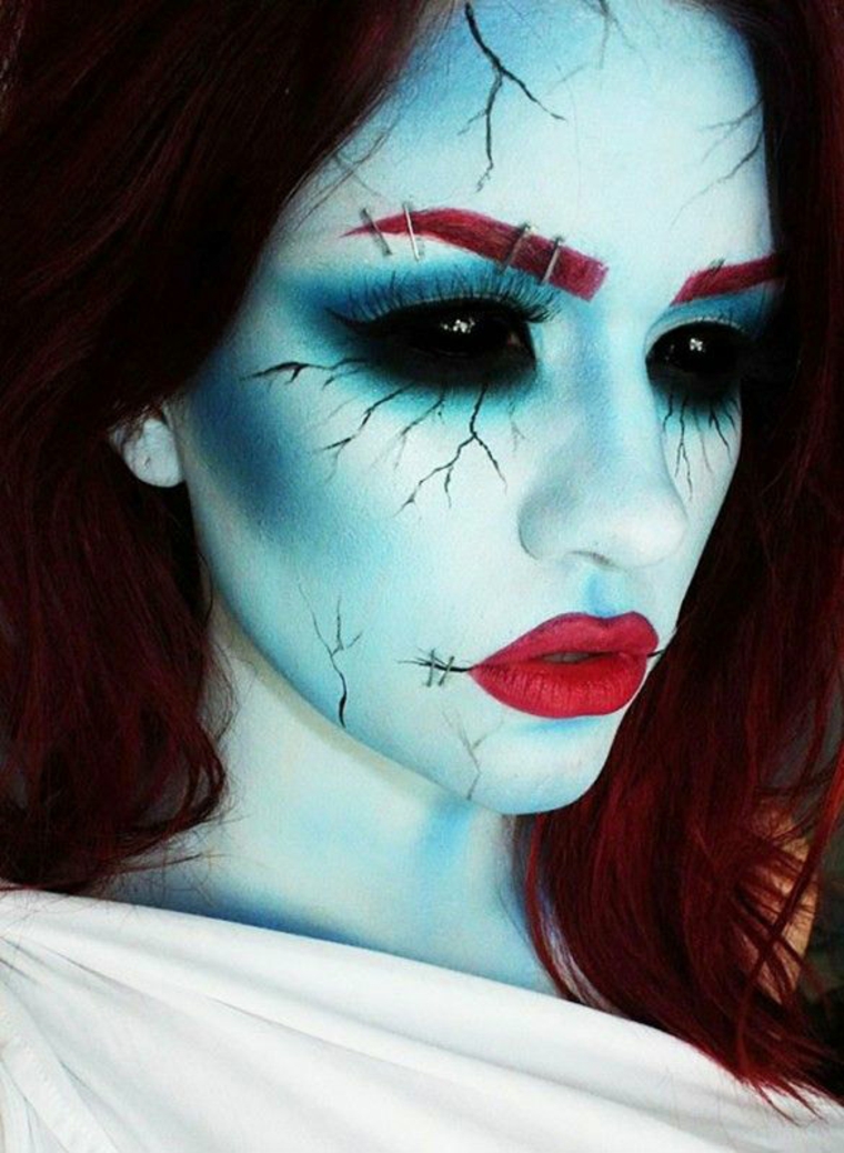 Maquillage gothique aspect cadaverique sourcils ecarlate couleur turquoise