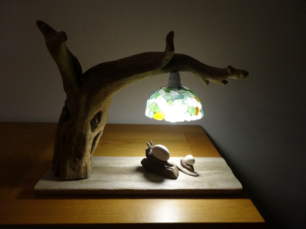 Bois flotte lampe escargots
