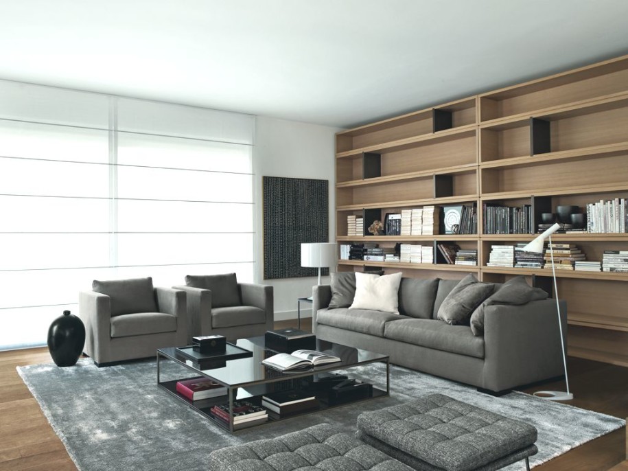 Idee deco salon meubles gris etagere bois