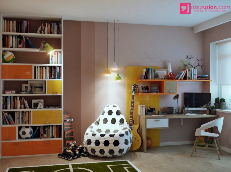 Aménagement chambre garçon avec pouf football