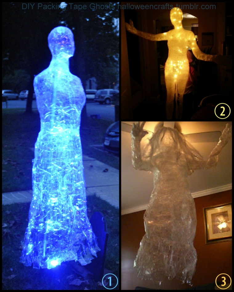 Decoration pour halloween femmes fantomes sac poubelle eclairees