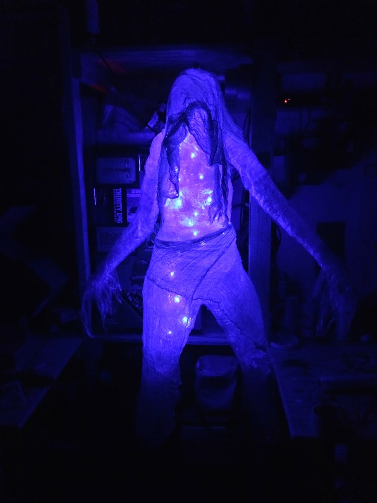 Decoration pour halloween lumineuse bleue sac poubelle
