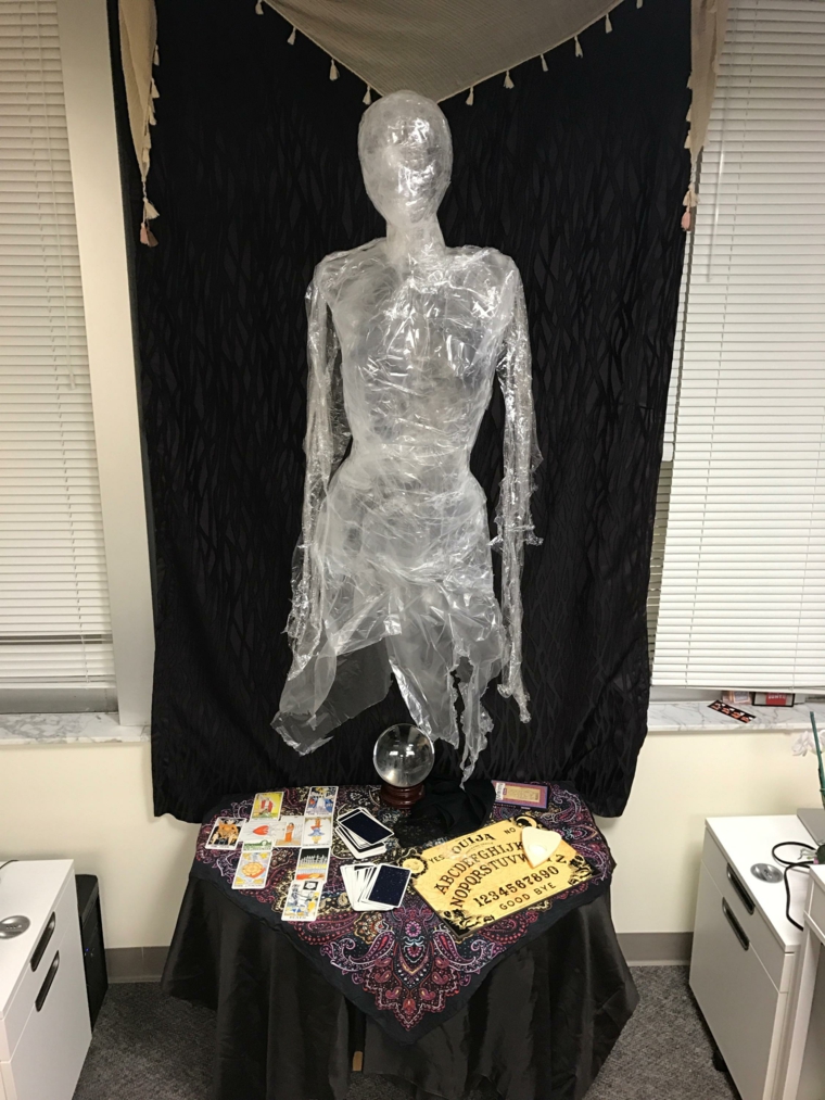 Decoration pour halloween sac poubelle femme debout