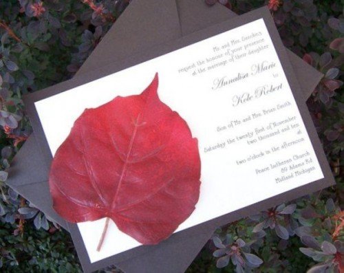 Carte invitation mariage feuille rouge