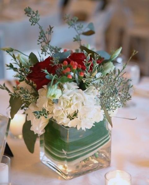 Mariage de noël deco table rose petit bouquet verre