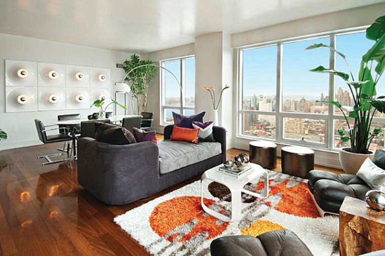 Salon dominé par deux grandes plantes