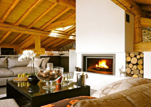 Coin détente table lacquée belle cheminée centrale