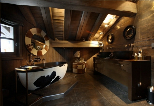Salle de bain chic baignoire ilôt clin d’oeil paturage