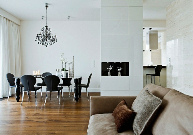 Chaises noires lustre glamour ressortent intérieur blanc