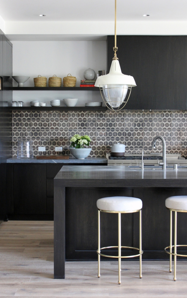 Carrelagge forme particuliere cuisine gris fonce presque noir conception interieur