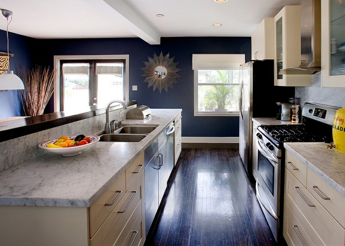 Navy blue walls transform the ambiance of the kitchen resized