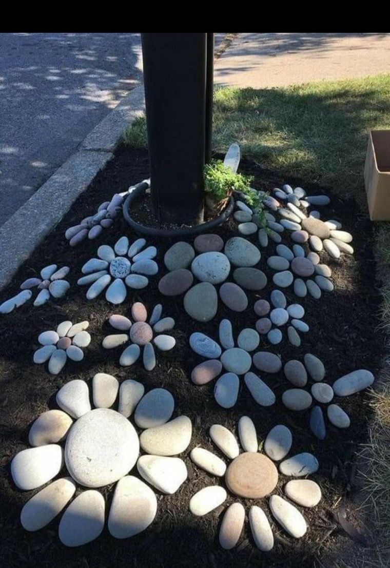 Deco de massif avec galets base arbre