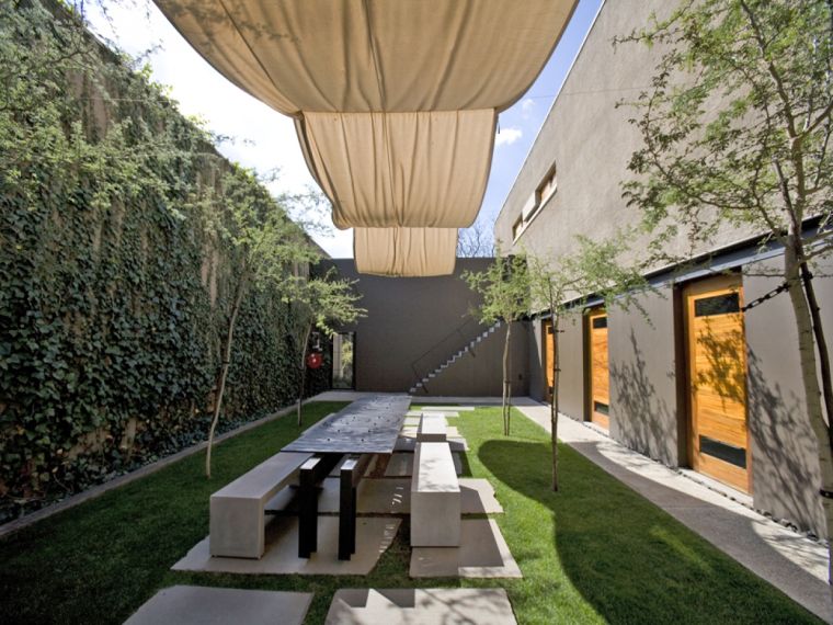 Cour interieure lieu convivial table jardin vertical