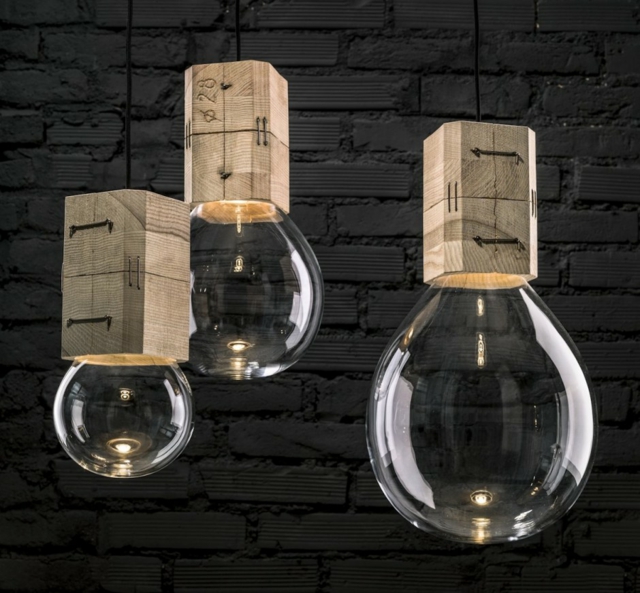 Lampes design verre souffle socle bois