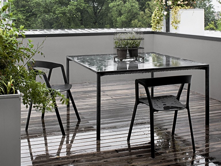 Table carree en ciment chaise de jardin design lucidi pevere bioacca kristalia chaise
