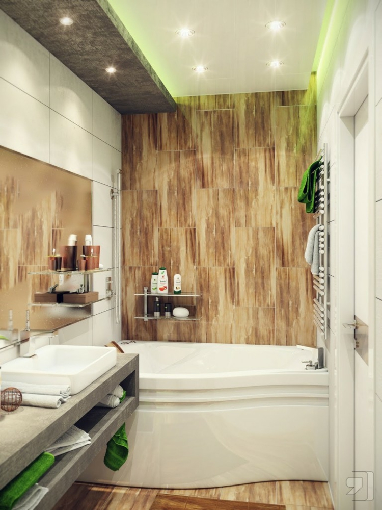 Carrelage salle de bain imitation bois baignoire
