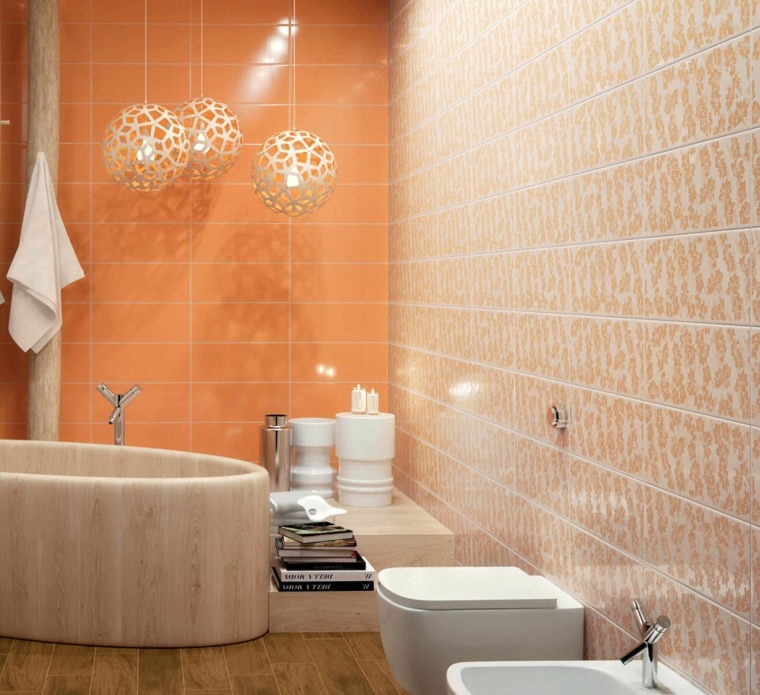 Idées carrelage salle de bains orange
