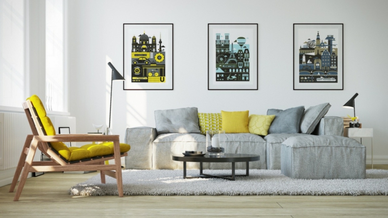 Idée couleur salon jaune canape